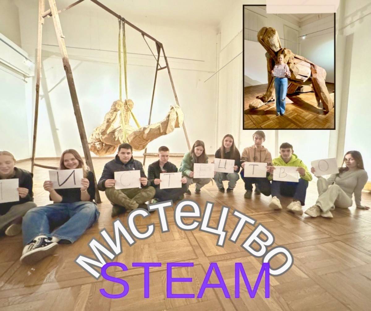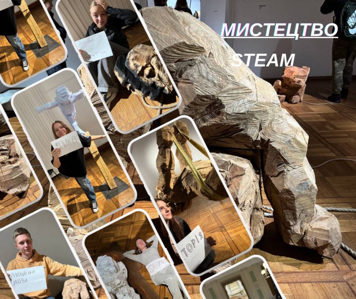 Сьогодні десятикласники відвідали виставку В. Семківа «Kindergarten» у Національному музеї ім. Андрея Шептицького. Крім того, що надихалися, шукали сенси, відчували запахи деревини, мали також і практичну роботу. Шукали STEAM зв’язки між шкільними предметами та мистецькою виставкою. Дійшли висновку, що не існує жодного предмета, з яким би не поєднувалося мистецтво!