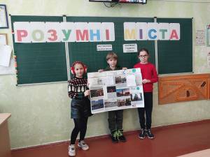 Учні займались пошуком інформації, складали свій рейтинг розумних міст, аналізували вплив інновацій на комфорт життя у містах, працювали в командах над створенням своїх інформаційних карт.