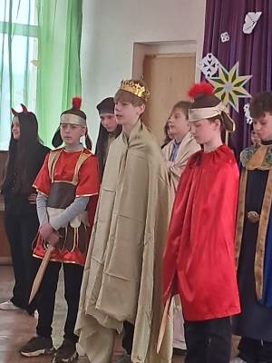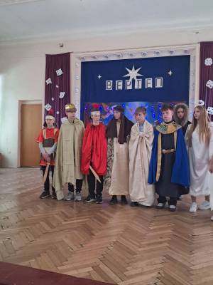 На завершення розколяди учні 8-А класу представили традиційний різдвяний вертеп.