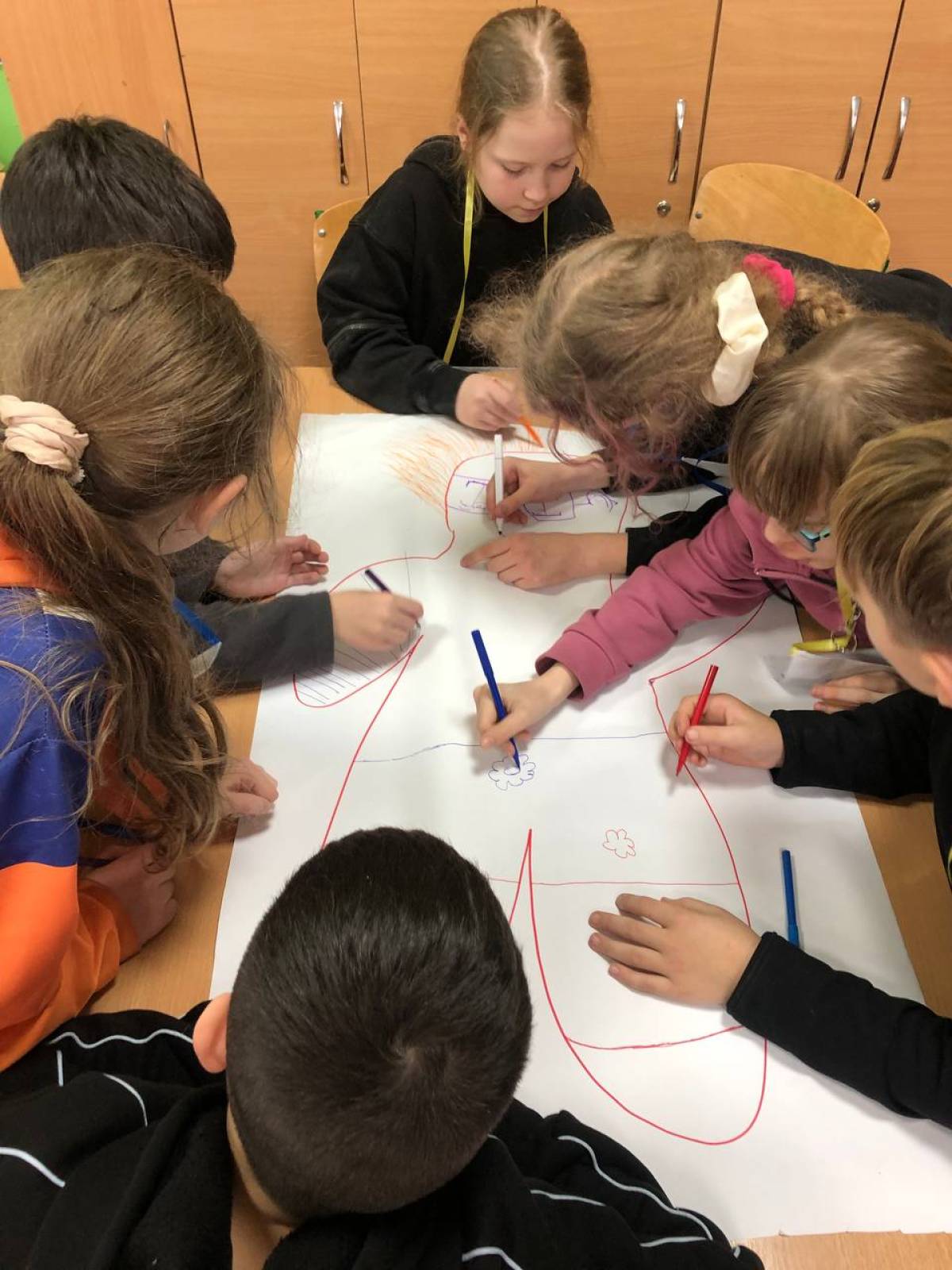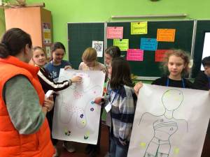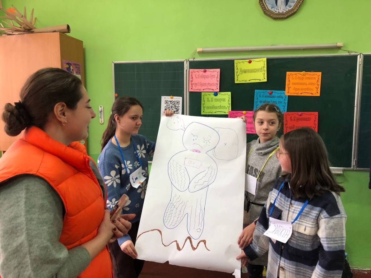 Учні 5-А класу взяли участь у практичному тренінгу за американською методикою «First Aid Arts». Це чудові занаття, під час яких у форматі гри діти вчилися розпізнавати власні емоції, працювати з напругою та знаходити внутрішні ресурси через творчість. Малювання, рух, уява й щире спілкування створили безпечний простір, де кожен міг бути собою, говорити про почуття та вчитися підтримувати одне одного.
